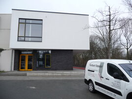 In Zusammenarbeit mit dem Architekturbüro Recker aus Emsdetten durften wir Alt- und Neubau des Pascal-Gymnasiums in Münster mit neuen Holz-Alu-Elementen ausstatten. In einem ersten Schritt haben wir die Mensa im alten Teil des Gebäudes mit neuen Fenstern versehen. Im gleichen Zuge haben wir nach außen öffnende Fluchttüren eingebaut. Die Aufgabenstellung seitens des Auftraggebers war, das Farbkonzept immer wieder in kontrastreichen Elementen aufzugreifen. Eine Besonderheit dieses Objektes ist die Sporthalle im ersten Obergeschoss, in der wir ballwurfsicheres Glas verbaut haben. Ebenso war die aufwändig gestaltete Eingangstür eine gern angenommene Herausforderung. Auf den Bildern zeigen wir die sich im Neubau befindlichen Büro- und Sozialräume.